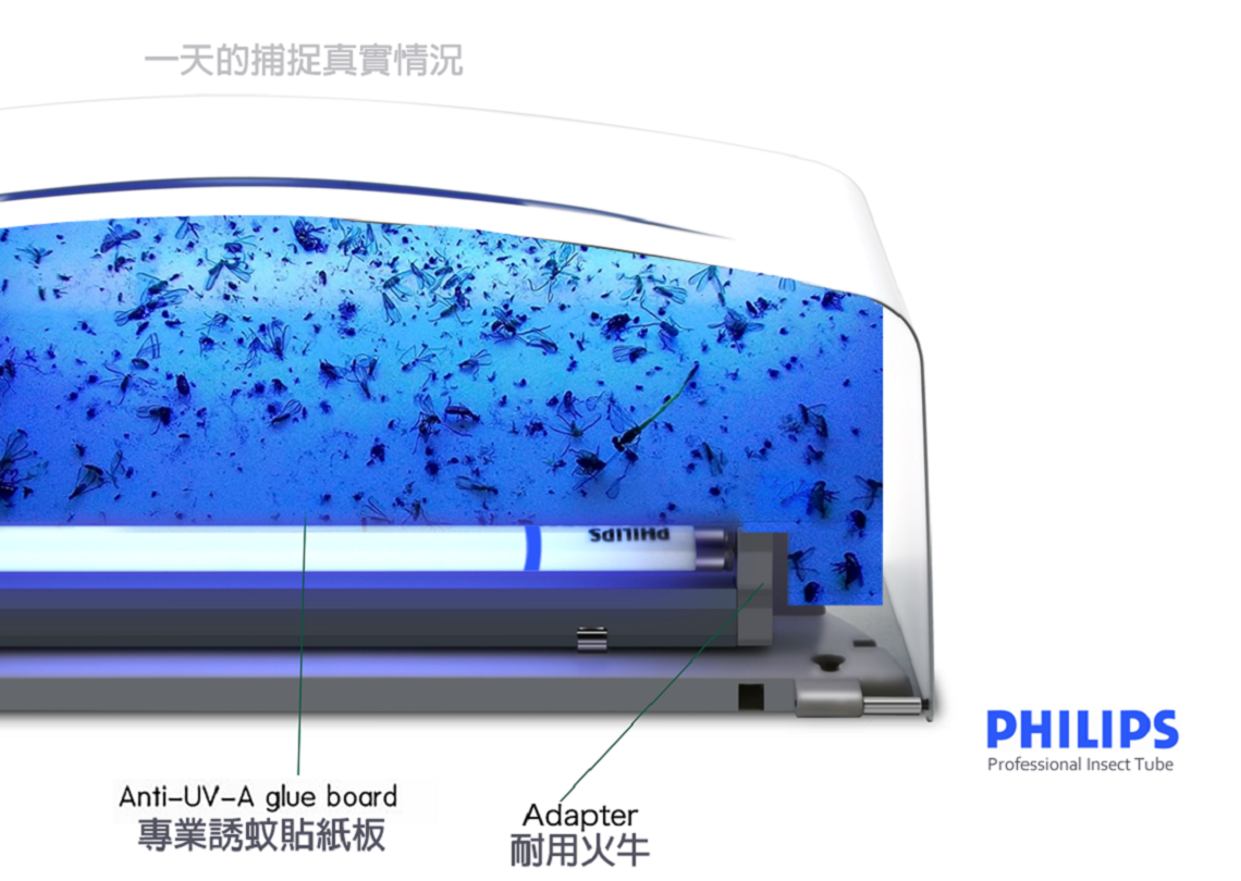 PHILIPS 特制誘蚊光管, 快速誘殺飛行中的蚊蟲 - 細小的機身但有效範圍高達400平方呎