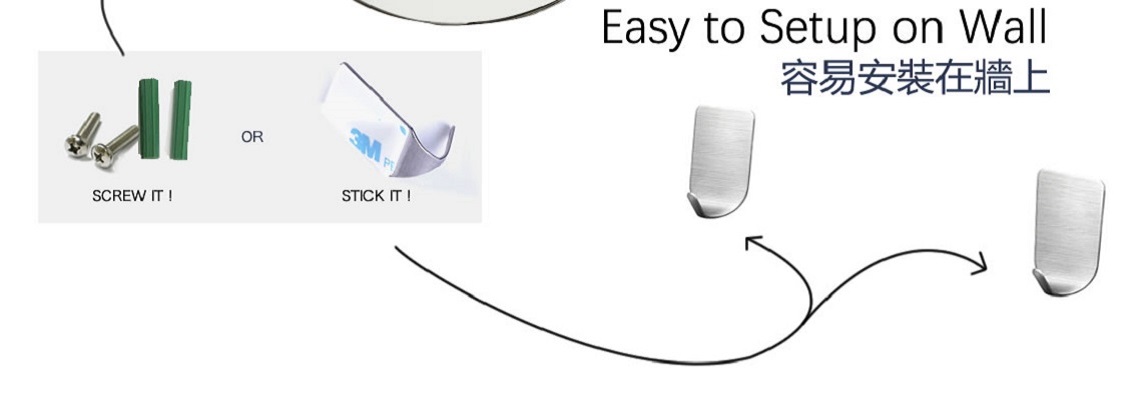 安裝時可以收螺絲入牆, 或者可用特黏雙面貼紙/掛勾掛牆 - 對於蚊蟲來說是不可抗拒的誘惑